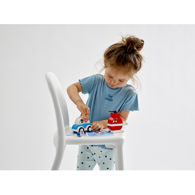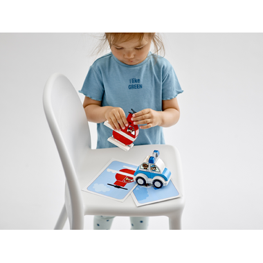 LEGO DUPLO My First Fire Helicopter and Police Car (10957) is a toddler-friendly, developmental toy built with colorful shapes and filled with fun features. Kids rescue vehicle toy. Toddlers build skills as they enjoy hands-on fun with this push-along police car and fire-fighting helicopter.