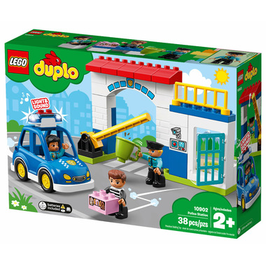 Preschoolers will love creating stories through pretend play at the easy-to-build 10902 Police Station. Help the police officers whizz out in the police car with flashing lights and siren sound to catch the crook on the run with the police officer's doughnuts! Then take him back to the toy police station and lock him safely in the jail cell. Includes 3 DUPLO figures.