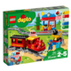 - Includes train driver and child LEGO DUPLO figures, plus a squirrel figure Features a buildable Push & Go locomotive with lights and sounds, passenger carriage, 5 colour-coded action bricks, train station, coal tipper, tree and 16 pieces of track