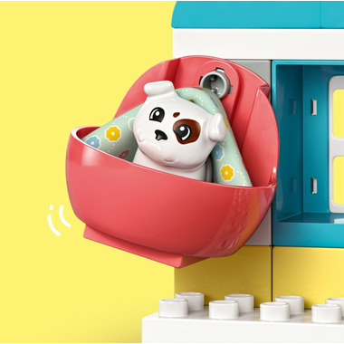 • Preschool kids' building toy with engaging features This vet playset comes with a swinging cradle, a tactile fabric blanket and hinged windows for little fingers to practice fine motor skills