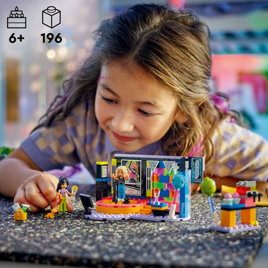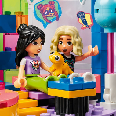 Here's a fun gift for girls, boys and kids aged 6 plus who love singing toys and pretend play. The LEGO Friends Karaoke Music Party (42610) set comes with a revolving stage, microphones, a relaxation area and a toy slushie machine so kids can tell the story of the karaoke birthday party. It includes 2 LEGO Friends characters with additional faces to show them singing, a gecko figure and lots of accessories. This kids' building kit brings role play to life as kids act out the story of Liann's birthday party. They can make the stage turn using the gear wheel and pretend that the characters are singing using the microphones and additional character faces. The story continues as the friends enjoy a slushie and cupcakes when it's time to take a break. Nova has even brought a fun birthday gift for Liann, which kids can include in the imaginative play. Discover more kids' toys in the LEGO Friends universe, where there's lots of opportunity for storytelling as kids act out real-life adventures.