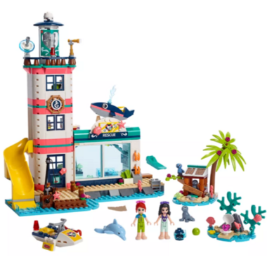 Let your kid get totally immersed in adventure action play with LEGO® Friends 41380 Lighthouse Rescue Center playset. This rescue center toy has a multitude of features, including a lab, sea lion play area, rest area, TV room, office and an observation deck with a lamp that can be lit by pressing the lighthouse roof. Rescued sea lions access the lighthouse clinic using a clever hinged pool that swings through 180 degrees to bring the sea lions into the clinic. Also included is a water scooter for rescuing the sea animals and a mini island where the sea lion is trapped in an abandoned shack, which has a fun button function your child can push to set the sea lion free.