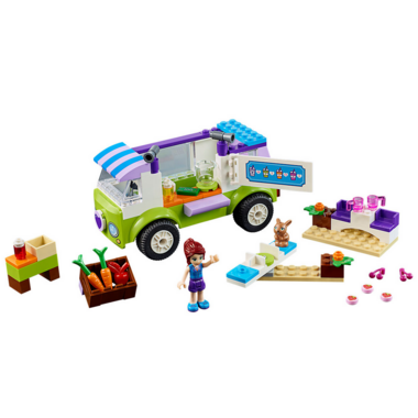 Start the day out right with goodies from Mias Organic Food Market, featuring an Easy to Build truck with Quick Start chassis, opening side and rotating sign, plus a spinning merry-go-round, stand-alone crates and a picnic table with seats. This colorful and fun toy also includes a simple guide to build and play, with bigger starter pieces to help build confidence in younger children. Includes a mini-doll figure and bunny figure.