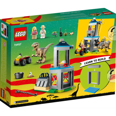 Youngsters can learn to build and play with this awesome LEGO Jurassic World Velociraptor Escape (76957) toy playset for ages 4 and up. Inspired by an iconic Jurassic Park scene, it features a dinosaur pen with a tower, breakout function and winch to lower food to the Velociraptor figure. A cool gift idea for young kids, the set also includes a buildable off-roader vehicle, 2 minifigures and fun accessory elements to inspire creative play. Digital instructions The simple pictorial instructions are perfect for kids who are only just learning to read. For added digital fun, the LEGO Builder app features intuitive zoom and rotate tools that let kids visualize their model as they build. Build together LEGO 4+ building toys introduce young kids to a universe of their movie favorites, TV characters and everyday heroes. They are specially designed with Starter Bricks so even first-time builders can construct vehicles, buildings and more with just a bit of help from an older sibling or adult.