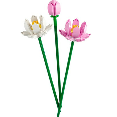 Recreate a wonder of nature with the LEGO Lotus Flowers (40647) building set. This LEGO interpretation of the globally celebrated flower depicts 2 Lotus in full bloom, plus a flower head in bud, all in delicate shades of pink and white, with long green stems for vase display. This beautiful LEGO bouquet makes a great birthday, holiday or any-day gift idea and can be combined with other buildable LEGO flower sets (sold separately).