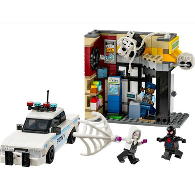 The Spider-Man playset comes with 4 minifigures: Miles Morales, The Spot, Gwen Stacy and Officer Jefferson. The convenience store has an exploding-wall feature that allows the ATM to be removed. Accessories include a long, flexible web rope and a flexible web that is large enough to encase a minifigure. The police car opens to allow 2 minifigures to be placed inside. For added digital fun, builders can zoom in, rotate models in 3D and track their progress using the fun, intuitive LEGO Builder app.