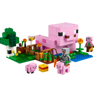 - LEGO Minecraft baby pig house - Kids build a pig-shaped house that comes with a farm plot where potatoes and beets grow, a field with a gate to guide the baby pig through and more