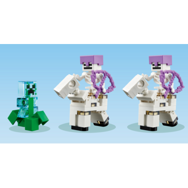 The first is a golem fortress, featuring 2 heroes from the game, the Crystal Knight and the Golden Knight, who protect their base from hostile attackers, a Charged Creeper and 2 skeleton horsemen. To scale up the action, kids can reconfigure the fortress into a towering golem figure, with huge movable arms.
