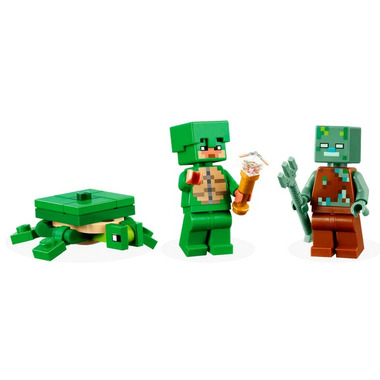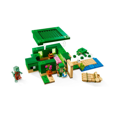 This model house shaped like a Minecraft turtle is packed inside and out with Minecraft action and animal fun. With 3 iconic characters and a cool structure to build, the LEGO Minecraft The Turtle Beach House (21254) set is a great gift idea for kids and Minecraft players aged 8 and up. Players build a turtle-shaped Minecraft house with windows, lanterns, a door, bed, table, crafting table and a furnace. A lift-off roof gives easy access to the interior. Outside, there's a beach area with sugar cane, turtle eggs and a bamboo raft with oars. There are familiar Minecraft figures and mobs: a Turtle Skin Warrior in a turtle skin and helmet, a Drowned with a trident, a Turtle nibbling seagrass and 3 baby turtles. Other accessories in this toy for gamers include a spyglass and a map. Fans of gaming action, creative construction and animal care will love this versatile toy. For extra digital fun, the LEGO Builder app allows builders to zoom in, rotate models in 3D and track their progress.