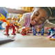 - Forest trap and shooter - This red dragon toy set includes a small forest build used to trap characters, a powerful shooter vehicle that can fire a large arrow, plus 3 small flame elements