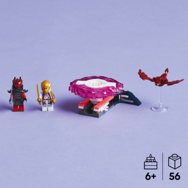 Kids ages 6 and up can enjoy hours of action-packed fun with the LEGO NINJAGO Soras Dragon Spinjitzu Spinner (71824) building toy. Boys and girls will love using their imaginations to play out scenes from season 3 of the NINJAGO Dragons Rising TV show. Once built, kids can push the launcher button to unleash the Soras Dragon Spinjitzu Spinner toy into a rapid spin and watch the spinner hits its target. This kids toy also comes with 2 minifigures: Sora who rides inside the dragon spinjitzu spinner and has a sword accessory and a villainous Dragonian Warrior with his own sword accessory. Boys and girls can have fun playing as different characters as they stage good vs. evil battles with these well-known characters. The range of LEGO NINJAGO building sets and battle toys includes mechs, dragons and temples to add to exciting playtimes. Each playset can be created with the LEGO Builder app, which guides kids with easy and intuitive building instructions. Contains 56 pieces.