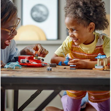 Introduce preschoolers aged 4+ to building and playing in the LEGO Star Wars universe with this starter set featuring The Crimson Firehawk starship from Star Wars: Young Jedi Adventures. It has a Starter Brick base to give young builders a confident start, and there's space for all 3 included Star Wars characters (Nash Durango and Nubs LEGO minifigures, plus an RJ-83 LEGO droid figure) in the cockpit. The set also includes a Star Wars buildable speeder bike toy that fits inside the starship vehicle, plus a small marketplace build for creative play. The simple pictorial instructions are ideal for children who are only just learning to read. For added digital fun, the LEGO Builder app has zoom and rotate tools that let kids visualize their model as they build (perhaps with just a little help from an adult or older sibling). A top LEGO gift idea for Star Wars: Young Jedi Adventures fans, this collectible building toy mixes well with the Tenoo Jedi Temple set (75358 sold separately).