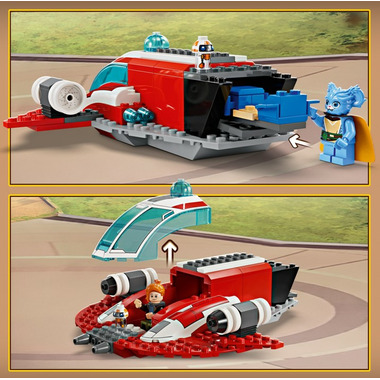 • Simple to build The Crimson Firehawk features a Starter Brick base for easy building and a cockpitwith space for all 3 characters, and the speeder bike fits in the rear of the starship