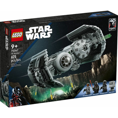 Star Wars: The Empire Strikes Back fans can play out Imperial missions to defeat the Rebel Alliance with this LEGO brick-built TIE Bomber (75347) starfighter toy. It features an opening minifigure cockpit, a torpedo-dropping function and 2 stud shooters. A top gift idea for Star Wars fans aged 9 and up, this action-packed, buildable toy playset also includes Darth Vader, Vice Admiral Sloane and TIE Bomber Pilot LEGO minifigures with weapons, plus a Gonk Droid LEGO figure and a cart to transport torpedoes to the TIE Bomber.