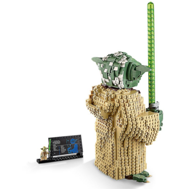 - Features intricate detailing, posable head and eyebrows, movable fingers and toes, Yoda’s green Lightsaber, as well as a fact plaque with details about the Jedi master and a stand for the included Yoda minifigure and Lightsaber.