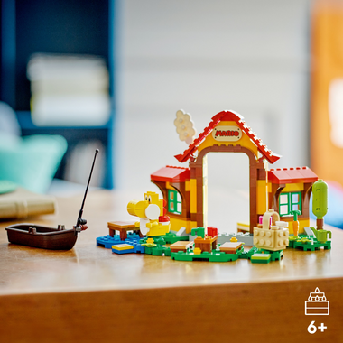 Kids can create a fun-packed level with this cool LEGO Super Mario Picnic at Marios House Expansion Set (71422). The detailed brick-built house and garden offer rich role-play options and ways for players to earn digital coins with their interactive LEGO Mario, LEGO Luigi or LEGO Peach figures (not included). Say Hi to the Yellow Yoshi, sleep on the bed, eat cookies from the picnic basket, water the vegetables in the garden, play field hockey or go fishing in the boat. Note: the 71360, 71387 or 71403 Starter Course is required for interactive play. Top gift This collectible toy playset makes an awesome gift for kids aged 6 and up who like to be part of the latest trends. Download the LEGO Super Mario app for building instructions, inspiring tips and other fun stuff to enhance children's creative experience. Endless possibilities LEGO Super Mario Starter Courses and Expansion Sets allow fans to expand, rebuild and create unique levels for hours of coin-collecting play.