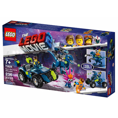 Includes 3 THE LEGO? MOVIE 2? characters: Emmet and Rex minifigures, plus a buildable Plantimal figure Features Rex?s 3-in-1 Rex-treme Offroader that can be rebuilt with the Recon Rex-o-saurus to create the Rex-o-saurus Quad or Execu-Rex-o-saurus Rex's Rex-treme Offroader features a dual minifigure cockpit and rotating rear turret with 2 stud shooters The Recon Rex-o-saurus features snapping jaws, posable legs, 2 stud shooters and a buildable removable gun (non-shooting) Ages 7+