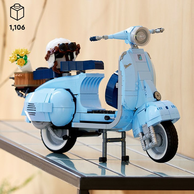 Dive into a mindful building project packed with style with this LEGO Vespa 125 model kit for adults. Inspired by the classic 1960s Vespa Piaggio, it comes in pastel blue a very rare LEGO colour that֒'s sure to appeal to building fans. To celebrate Vespas 75th anniversary, the LEGO designers have worked closely with the lifestyle brand to recreate this stunning model in an immersive build, especially for adults. Beautiful details. Authentic features Like the original, this buildable model Vespa features a front wheel mounted on one side, 2 seats, a removable engine cover with a brick-built engine beneath, a functioning kickstand, plus working steering. Finishing touches include the Vespa logo, a classic 1960s Italian license plate, a spare wheel, a helmet, plus an accessories basket including a flower bouquet on the back. Welcome to your zone Build creativity. Build concentration. Build your dream vehicle collection with exclusive, authentic model vehicles, made specifically for adults.