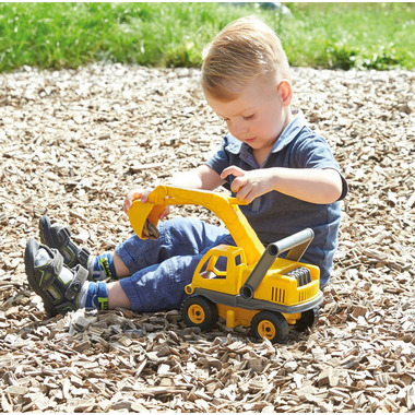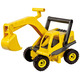 Active car excavator produced in an ecological way using recycled materials and wood. It is fully mechanically functional. It includes a safety lock against unwanted rotation, a retractable cabin.