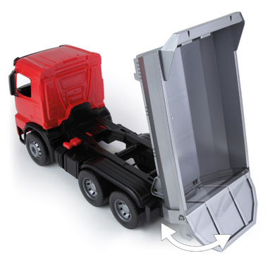 Movable parts: the dump tray can be locked and opened and together with the movable tailgate, the construction is deceptively real - for realistic play on the construction site.