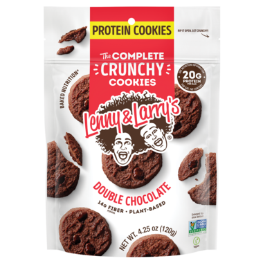 The Lenny & Larry's Complete Crunchy Cookie is a plant-based protein cookie with 20g of protein and 14g of fiber per bag.