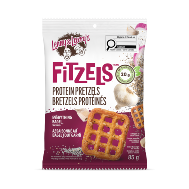 Not your average 'lil bite-size crunchy snacks... FITZELS are a super snack situation fitting 20 g of protein per 85 g serving to help build strong muscles, carbohydrates to supply energy, and massive snack-you-in-the-mouth flavour. Dive in and lay the snack down. Bakin' it better since '93