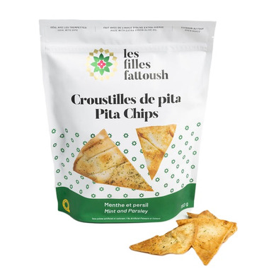 Les Filles Fattoush Pita Chips Mint & Parsley are oven baked, made with extra virgin olive oil and ideal with dips.
