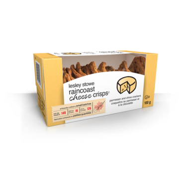 Lesley Stowe Raincoast Cheese Crisps parmesan and chive crackers artisanally crafted in small batches.