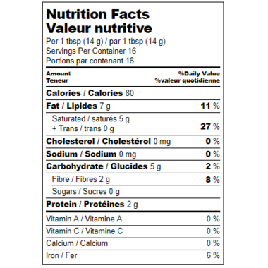 Ingredients: Organic virgin coconut oil, organic raw cacao powder, organic turmeric, organic cinnamon, organic ginger, organic black pepper. Contains: tree nuts (coconut nut).