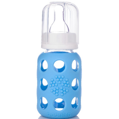Lifefactory Glass Baby Bottle with Silicone Sleeve Sky Blue