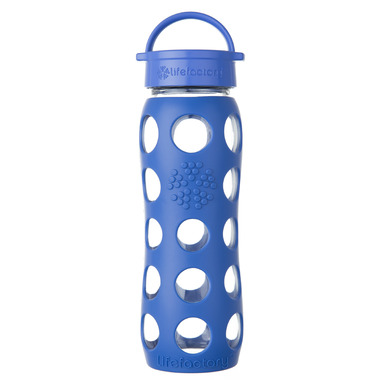 Lifefactory Glass Bottle Cobalt Classic Cap and Silicone Sleeve is, well, a classic. It's a simple screw cap that just plain works. It's the favorite cap for those that prefer to drink direct from a wide mouth. The handle can be clipped to bags and the leak-proof cap seals with a twist.