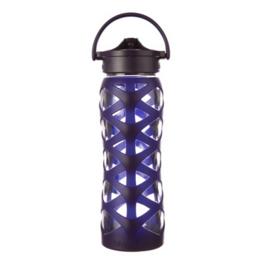 Lifefactory Glass Water Bottle with Axis Straw Cap & Aubergine Sleeve