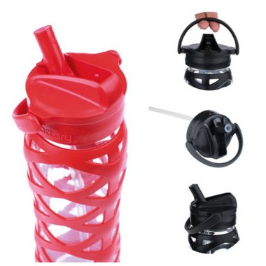Lifefactory Glass Water Bottle with Axis Straw Cap & Charge Red Sleeve