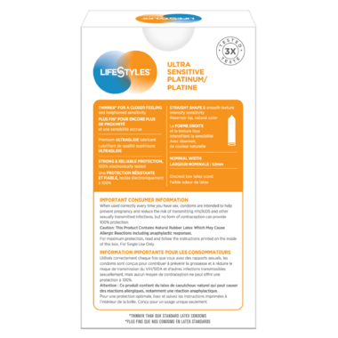 LifeStyles® Ultra Sensitive Platinum™, is LifeStyles thinnest condom ever. Scientifically engineered to get you both closer. Ultra Sensitive Platinum™ premium latex condoms are quality tested to both U.S. and International Standards (ISO).