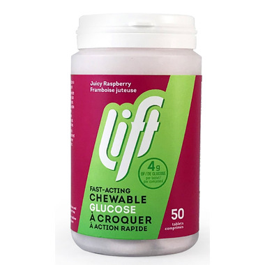 Lift is a fast-acting chewable Glucose tablet, with 4g of Glucose per tablet.