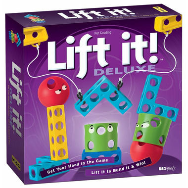 Lift it! Deluxe is the fun family game that challenges players to create structures with the Lift it! crane using their hands or their heads. The whole family will enjoy this active, playful game of beating the clock.