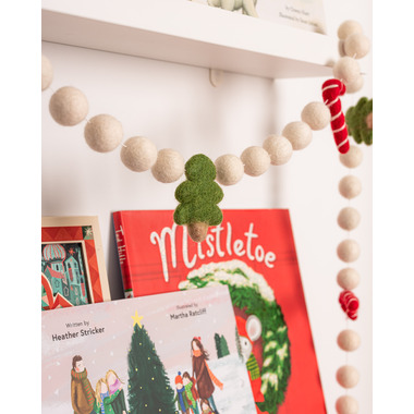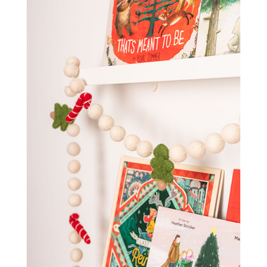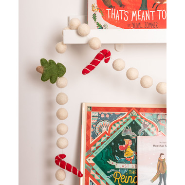 Their garlands are the perfect accessory for your nursery, milestone photos, birthday backdrop or holiday display! This Christmas garland features red and white candy canes and Christmas trees between white felt balls. The perfect garland to capture your lil one's Holiday memories! They've designed their garlands to be longer in length so they can fit across shelves, doorways, staircases, tables and more!