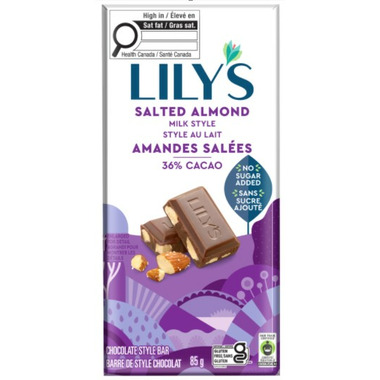 Lily's Salted Almond Milk Chocolate Style Bar 40% Cacao. No sugar added