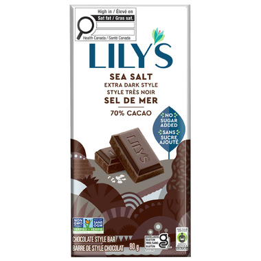 Lily's Sea Salt Extra Dark Chocolate Style Bar 70% Cacao. No sugar added.