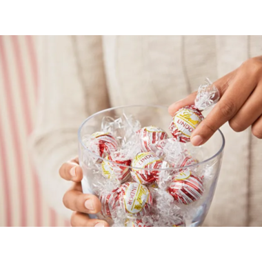Lindt LINDOR Candy Cane White Chocolate Truffles combine the beloved holiday flavours of creamy white chocolate and crisp peppermint to deliver a unique seasonal chocolate treat. Delicate white chocolate shells are filled with smooth melting white chocolate centres mixed with crunchy peppermint candy cane pieces to create a delectable combination of tastes and textures that is sure to delight the senses.