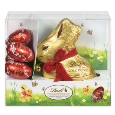 The perfect Easter Gift! This lovely gift box features the signature milk chocolate Lindt Gold Bunny & Lindor Eggs.