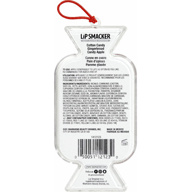 Ricinus Communis (Castor) Seed Oil, Caprylic/capric Triglyceride, Cera Alba/beeswax/cire D'abeille, Euphorbia Cerifera Cera/euphorbia Cerifera (Candelilla) Wax/cire De Candelilla, Polybutene, Aroma/flavor, Ethylhexyl Palmitate, Helianthus Annuus Hybrid Oil, Paraffin, Copernicia Cerifera Cera/copernicia Cerifera (Carnauba) Wax/cire De Carnauba, Hydrogenated Soybean Oil, Tridecyl Trimellitate, Cera Microcristallina/microcrystalline Wax/cire Microcrystalline, Pentaerythrityl Stearate/caprate/caprylate/adipate, Stearic Acid, Sucralose, Phenoxyethanol, Tocopheryl Acetate, Sorbic Acid, Tocopherol, Glycine Soja (Soybean) Oil, Cinnamal (In Gingerbread), Benzyl Benzoate (In Cotton Candy, Gingerbread), Eugenol (In Gingerbread), Limonene (In Gingerbread, Candy Apple), Benzyl Alcohol (In Cotton Candy), Amyl Cinnamal (In Cotton Candy), Citral (In Gingerbread), Linalool (In Candy Apple), +/- (May Contain/peut Contenir): Red 6 (Ci 15850), Red 7 Lake (Ci 15850), Red 28 Lake (Ci 45410), Titanium Dioxide (Ci 77891), Yellow 5 Lake (Ci 19140). [2306-1c]
