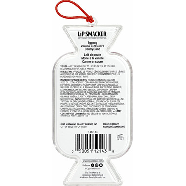 Ricinus Communis (Castor) Seed Oil, Caprylic/capric Triglyceride, Cera Alba/beeswax/cire D'abeille, Euphorbia Cerifera Cera/euphorbia Cerifera (Candelilla) Wax/cire De Candelilla, Aroma/flavor, Polybutene, Ethylhexyl Palmitate, Helianthus Annuus Hybrid Oil, Paraffin, Copernicia Cerifera Cera/copernicia Cerifera (Carnauba) Wax/cire De Carnauba, Hydrogenated Soybean Oil, Tocopheryl Acetate, Sorbic Acid, Tocopherol, Glycine Soja (Soybean) Oil, Tridecyl Trimellitate, Cera Microcristallina/microcrystalline Wax/cire Microcrystalline, Pentaerythrityl Stearate/caprate/caprylate/adipate, Stearic Acid, Sucralose, Phenoxyethanol, Cinnamal (In Eggnog), Benzyl Benzoate (In Eggnog, Vanilla Soft Serve), Eugenol (In Eggnog), Limonene (In Candy Cane), Benzyl Alcohol (In Vanilla Soft Serve), +/- (May Contain/peut Contenir): Red 28 Lake (Ci 45410), Titanium Dioxide (Ci 77891), Yellow 5 Lake (Ci 19140). [2306-1c]