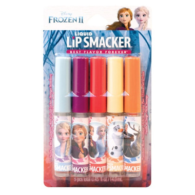 Experience the magic of Disneys Frozen with Anna, Elsa, and their friends in this 5-piece Lip Smacker lip gloss set - perfect for sharing or as an addition to any Frozen 2 fans collection. Delicious flavors glide on lips smoothly and provide moisture that lasts. Flavours include: Northern Blue Raspberry, Born to Lead Lychee, Stronger Together Strawberry, Vanilla Snow-it-all and Wilderness Peach.