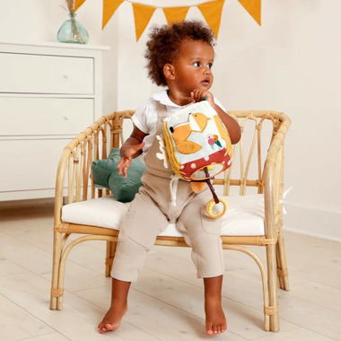 The Activity Cube is designed for playful discovery, serving as a developmental toy with a variety of fabrics that offers different textures and colors. It encourages hand-eye coordination and motor skills, including rattle, crinkly fabrics, and a mirror for discovering reflections. The Activity Cube is not only fun to play with but also aids in the development of fine motor skills.