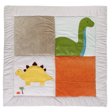 - The dino-themed design with a patchwork of different fabric textures engages the baby's sensory development