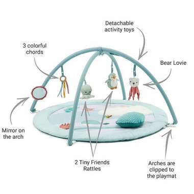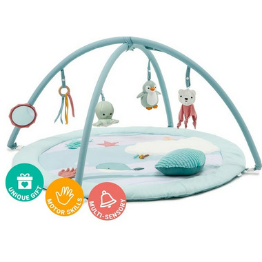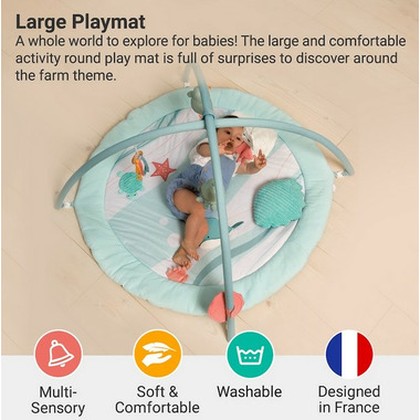This Playmat with Arch-large is full of surprises to discover: features 10 playful multi-sensory activities to boost your baby's development.