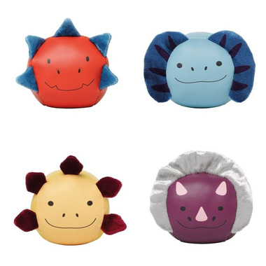 The Dino Friends Soft Balls are a set of 4 adorable roly-poly balls which include a Triceratops, a Dimetrodon, a Stegosaurus and a Tyrannosaurus. Fun and adorably shaped sensory toys that help promote early childhood development. Entertain for hours! The round shape and soft texture allow little hands to easily grasp and play. It helps promote motor skills and hand-eye coordination. The unique material is soft, hypoallergenic, and easily cleaned. Multi-textured fabrics provide sensory-stimulating and tactile play.
