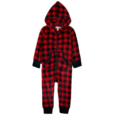 Wrap your little ones in timeless warmth with the Kids Buffalo Plaid Hooded Fleece Jumpsuit. Made from 100% soft polyester, it's the comfort of a winter cuddle in wearable form.