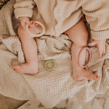 The best part about these teethers? You get 3 rings in 1 design! Their hollow design makes them easy for little hands to grab, and their smooth and textured surfaces provide added relief for your baby's gums. Seeing as they are pure silicone, they are also very easy to clean. Simply wash with mild soap and water or throw them on the top shelf of the dishwasher. You can also put these in the freezer for added relief when those painful teeth start poking through. Little Cheeks teethers are made using 100% food grade silicone. They are non-toxic, which means no BPA, lead, PVC or phthalates. SAFETY CERTIFIED (CCPSA, ASTM F963-17, EN71 Parts 1, 2, 3).